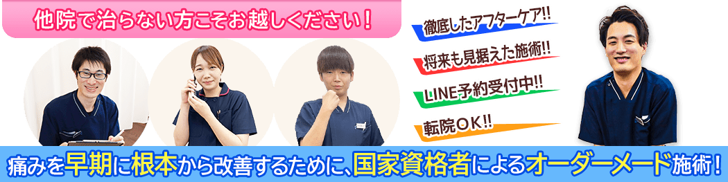 当院では、そのようなことにならないよう、将来を見据えた施術を行うとともに、施術後についてもしっかりとアドバイスさせていただきます。